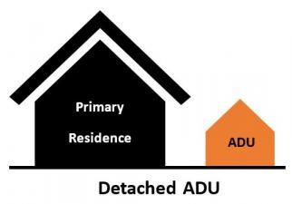 Detached ADU is an ADU that is constructed as a separate structure from the primary dwelling unit and does not share any walls with the primary dwelling unit or an existing attached accessory structure. Detached ADU Requirements (FCMC Section 17.78.060.D)