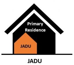 A Junior Accessory Dwelling Unit or JADU means a unit that is no more than 500 square feet in size and contained entirely within a single-family residence. A JADU may include separate sanitation facilities or may share sanitation facilities with the existing structure. JADUs are also referred to as interior units.